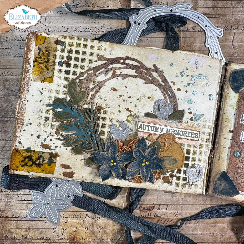 This set allows you to cut a base page with a distressed edge that fits the square XL journal, and decorative elements including a wreath, poinsettias, and foliage. These decorative dies are perfect for your Christmas journal pages.